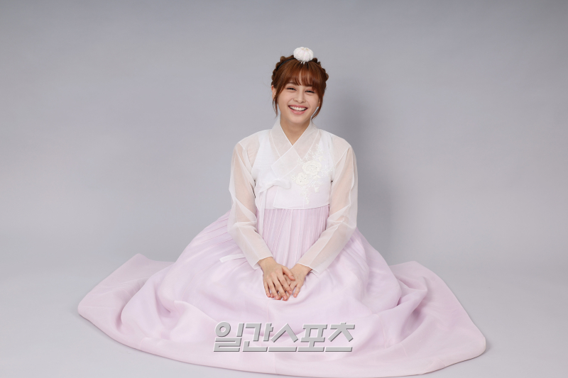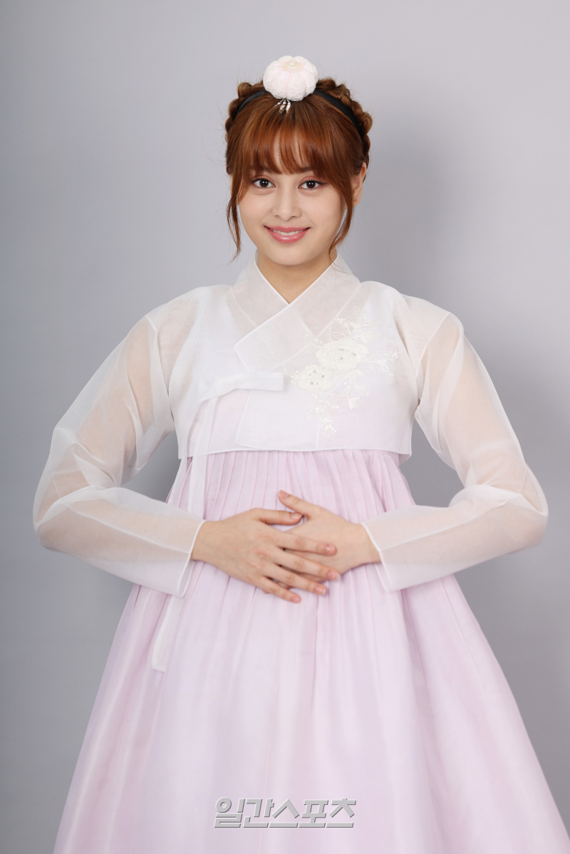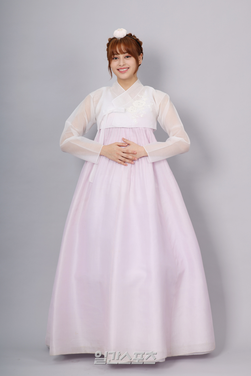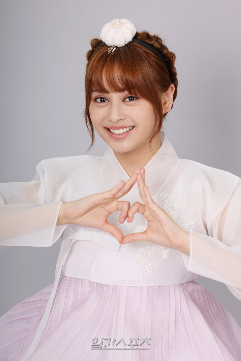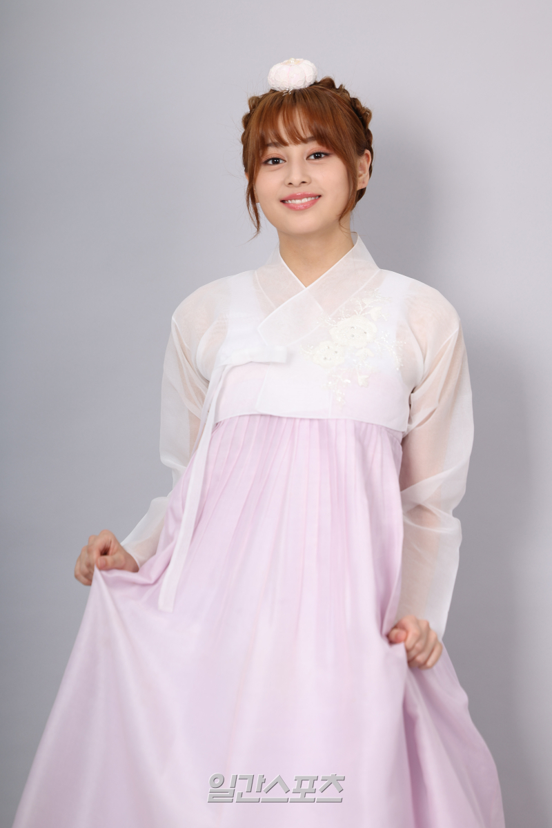 그룹 앳하트 케이틀린이 서울 중구 순화동 KG타워에서 진행된 추석 맞이 한복 인터뷰에 앞서 포즈를 취하고 있다.