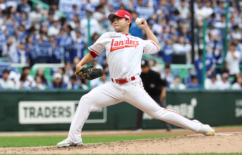 9일 인천 SSG랜더스필드에서 열린 2025 프로야구 KBO리그 포스트시즌 준플레이오프 1차전 삼성 라이온즈와 SSG 랜더스의 경기. 4회초 교체된 SSG 박시후가 역투하고 있다. 2025.10.9 [연합뉴스]