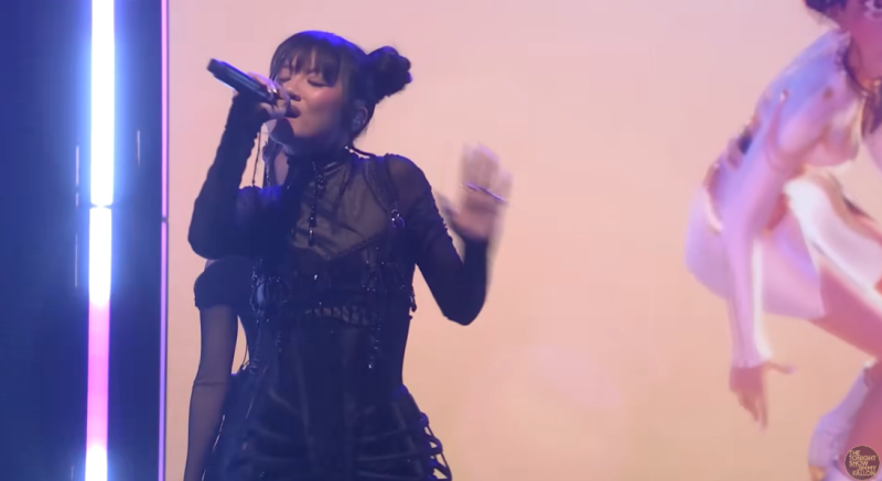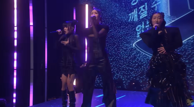 7일(현지시간) 미국 NBC 토크쇼 ‘더 투나잇 쇼 지미팰런’에는 헌트릭스의 가창을 담당한 가수 이재, 오드리 누나, 레이 아미가 출연해 OST ‘골든’을 불렀다. 이들은 각각 자신이 맡은 캐릭터 루미, 미라, 조이를 맡아 안정적인 라이브를 선보였다.