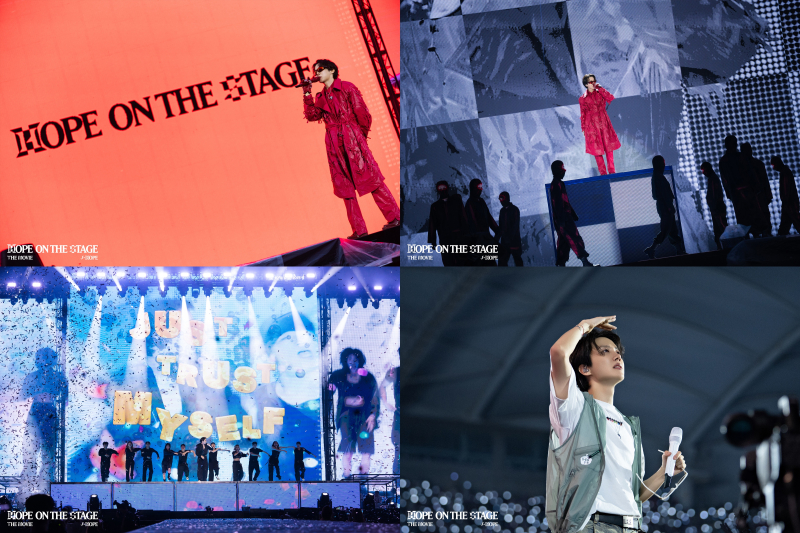 공개된 스틸에는 제이홉의 강렬한 퍼포먼스와 카리스마 넘치는 무대 장면은 물론, 방탄소년단 멤버 진, 정국과 함께한 스페셜 스테이지가 함께 담겼다. 여기에 반짝이는 아미밤의 물결, 화려한 무대는 실제 공연장에 있는 듯한 몰입감을 선사하며 장르의 경계를 넘나들며 강렬한 에너지와 압도적인 스케일로 눈길을 사로잡는다.
