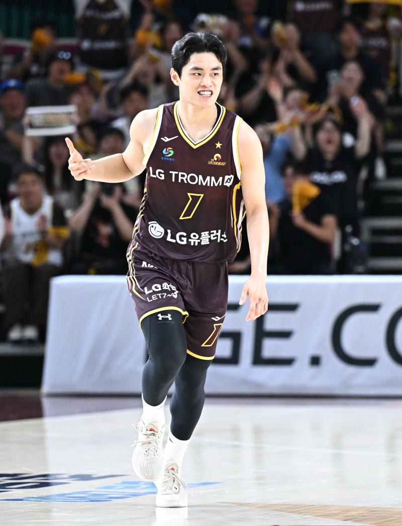 유기상. 사진=KBL 제공 여기에 LG 유기상의 고감도 외곽포는 승부를 빨리 결정지었다. 유기상은 1쿼터에만 3점슛 4개로 12점을 몰아 넣으며 기선을 제압했다. 양준석(8점)의 빠른 공격도 빛을 발했다.
