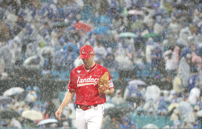 경기는 1회 말에 멈췄다. 1회 초 삼성 선발 원태인이 2사 1, 2루 위기를 잘 넘겼고 1회 말이 시작됐다. SSG 선발 드류 앤더슨이 2볼 후 2스트라이크로 2-2 볼 카운트를 잡은 가운데, 갑자기 빗줄기가 굵어지면서 경기가 중단됐다.