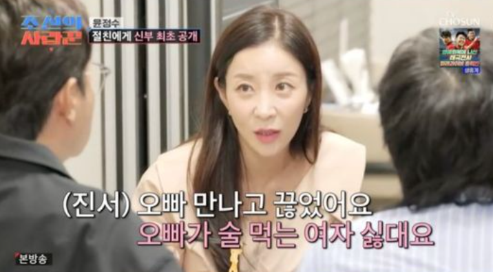 또 원진서는 ‘술을 마시냐’는 배기성의 질문에 “오빠 만나서 끊었다. 오빠가 술 마시는 여자 싫어한대요”라고 말해 놀라움을 자아냈다.