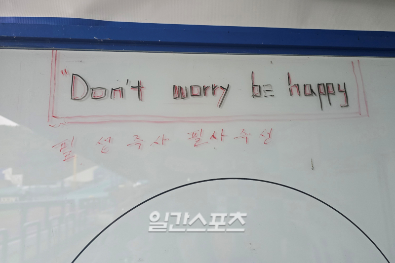 해당 문구는 삼성의 홈, 대구 삼성라이온즈파크 홈 더그아웃에도 새겨 있다. 시즌 초, 강민호가 외쳤던 'Don't Worry. Be Happy' 문구 밑에 적혔다. '걱정하지 말고, 행복하게 밝은 모습으로 야구하자'는 베테랑의 격려. 비슷한 의미의 '필사즉생'이 더그아웃 한 켠을 채웠다.