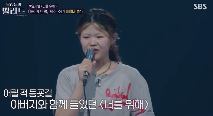 참가자 이예지는 1라운드에서 자신의 ‘인생 발라드’ 곡으로 임재범의 ‘너를 위해’를 선곡했다. 제주도 출신인 이예지는 택배 일을 하는 아버지의 차를 타고 학교에 등교를 할 때 늘 들었던 곡이 ‘너를 위해’ 였다며 “이 노래를 부르면 제주도의 풍경과 운전하는 아빠의 옆모습이 떠오른다. 이 노래를 듣고 아빠도 그때의 내 모습을 떠올렸으면 좋겠다”고 말해 심사위원들의 눈물샘을 자극했다. 이예지는 사연 뿐 아니라 마음을 울리는 보컬로 심사위원들 뿐 아니라 시청자들의 마음을 사로잡았다.