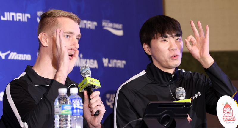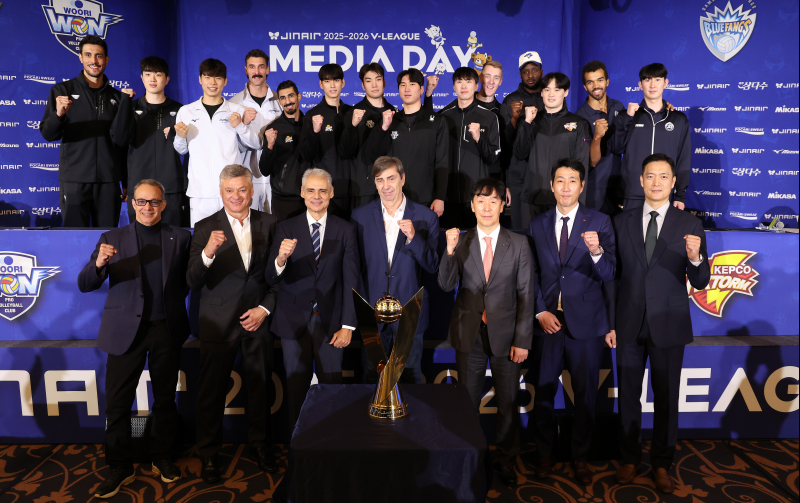 프로배구가 돌아왔다. 진에어 2025~26 V리그 남자부가 오는 20일 수원체육관에서 열리는 한국전력과 우리카드의 경기를 시작으로 6개월 대장정에 돌입한다. 7개 구단 감독과 대표 선수들은 15일 서울 호텔 리베라 청담에서 열린 미디어데이에 참석해 다가올 시즌 목표를 밝혔다.