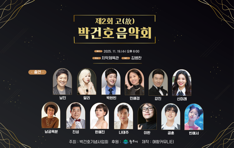 지난해 열린 ‘제1회 박건호 음악회’는 티켓 오픈 직후 전석이 매진되며 ‘티켓 전쟁’을 방불케 할 정도로 뜨거운 관심을 받았다. 이에 힘입어 마련된 이번 제2회 음악회는 한층 화려해진 라인업으로 관람 열기가 더욱 뜨거울 것으로 기대된다.