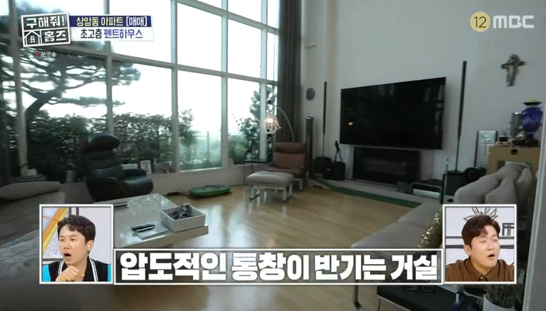 그런가 하면 상암동의 초고층 복층 펜트하우스 매물을 찾아가게 됐다는 말에 임우일은 “볼 수 있냐”며 눈을 반짝였다. 하늘공원이 꽉 들어차는 거실 통창 뷰에 발코니는 월드컵 경기장이 한눈에 들어왔다. 안방에는 야외로 뚫린 발코니가 딸려 욕실과 순환구조로 오갈 수 있는데다가 심지어 복층은 일반 아파트의 천장 높이라 세 사람의 감탄을 자아냈다.