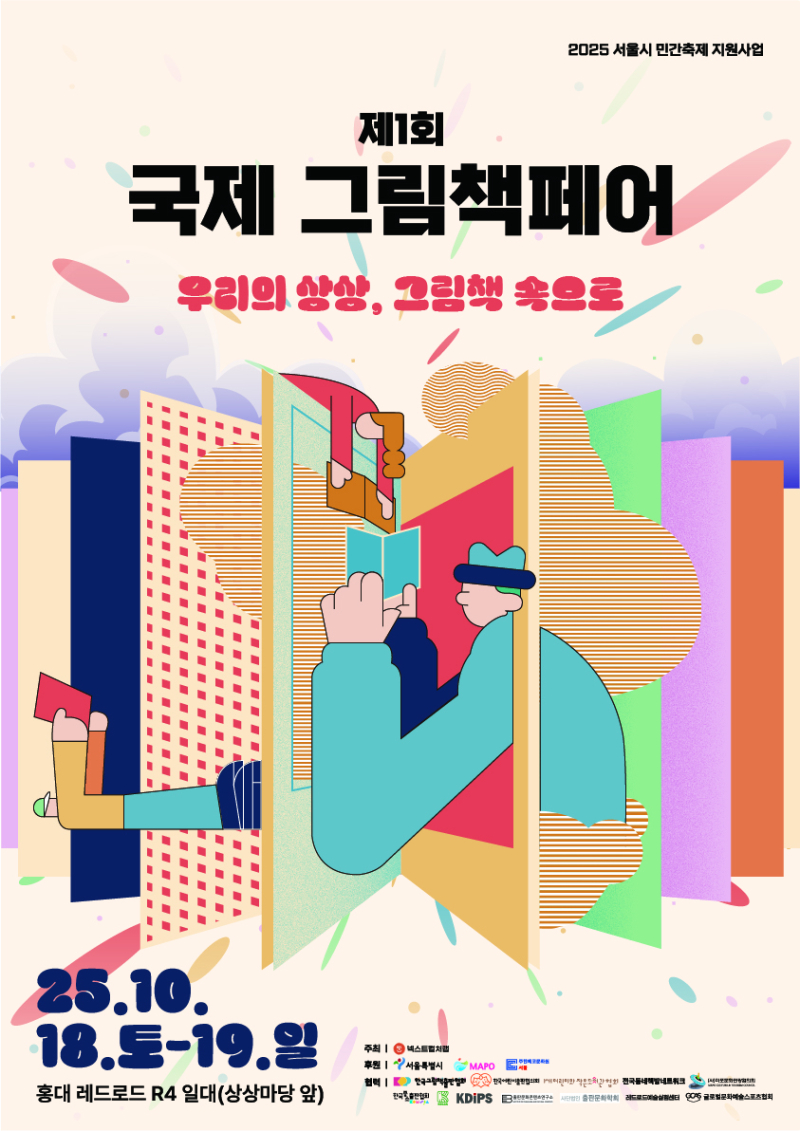 넥스트컬처랩㈜은 18일(토)부터 19일(일)까지, 서울시 민간축제 지원사업의 일환으로 서울 마포구 홍대 레드로드 R4(홍대 축제거리)에서 ‘2025 제1회 국제 그림책페어’를 개최한다.