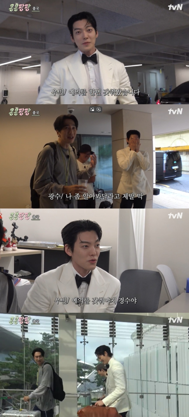 이어 나타난 도경수 역시 김우빈의 정장 차림을 보고 “형, 너무한 거 아니냐”고 당황했다. 김우빈은 “너 예의가 너무 없다”며 후배를 타박했고, 도경수는 “죄송하다. 제가 잘못했다”고 너스레를 떨었다.