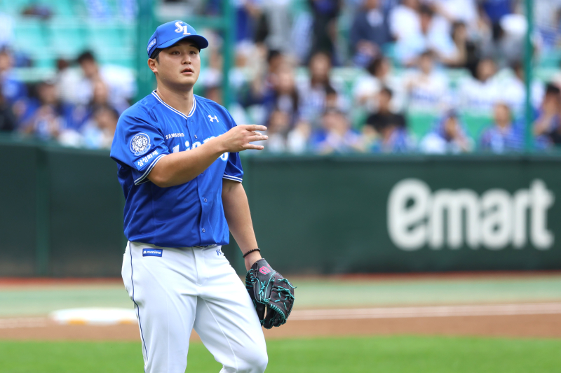 17일 예정됐던 1차전이 비로 하루 연기되면서 삼성의 선발 로테이션에 변화가 있는 듯했다. 13일 준플레이오프(준PO) 3차전에 등판한 원태인이 닷새 휴식을 취했기 때문에 19일 2차전 등판이 가능해졌기 때문이다. 하지만 박진만 삼성 감독은 "원태인이 지난 가을야구 두 경기에서 비가 오는 가운데 경기를 치렀다. 정규시즌에도 많은 이닝을 던져 휴식이 더 필요하다고 판단했다"라며 변화를 주지 않았다. 순리대로, 2차전 선발을 최원태에게 맡겼다.