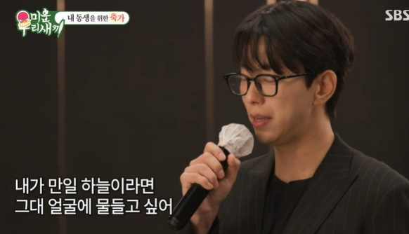 배우 윤현민이 이복동생의 결혼식에 참석했다. 이복동생을 향해 남다른 애정을 드러낸 윤현민은 축가를 부르면서 결국 눈물을 흘렸다.