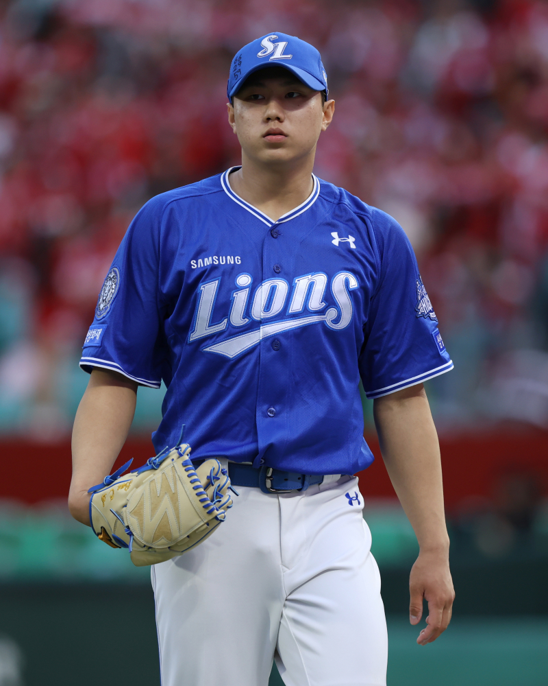 배찬승은 지난 18일 대전 한화생명볼파크에서 열린 2025 신한은행 SOL 뱅크 KBO 포스트시즌(PS) 플레이오프(PO·5전3선승제) 1차전에서 팀의 4번째 투수로 등판했다. 상황은 6-5 팀의 리드, 무사 2루 동점 위기에 올랐다. 신인 선수에겐 버거울 수 있었던 상황.