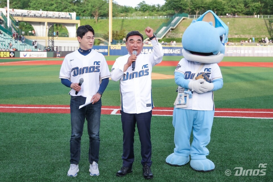 지난 5월 20일 울산에서 열린 NC-한화전에서 경기 전 행사에 나선 김두겸(가운데) 울산시장. NC 제공