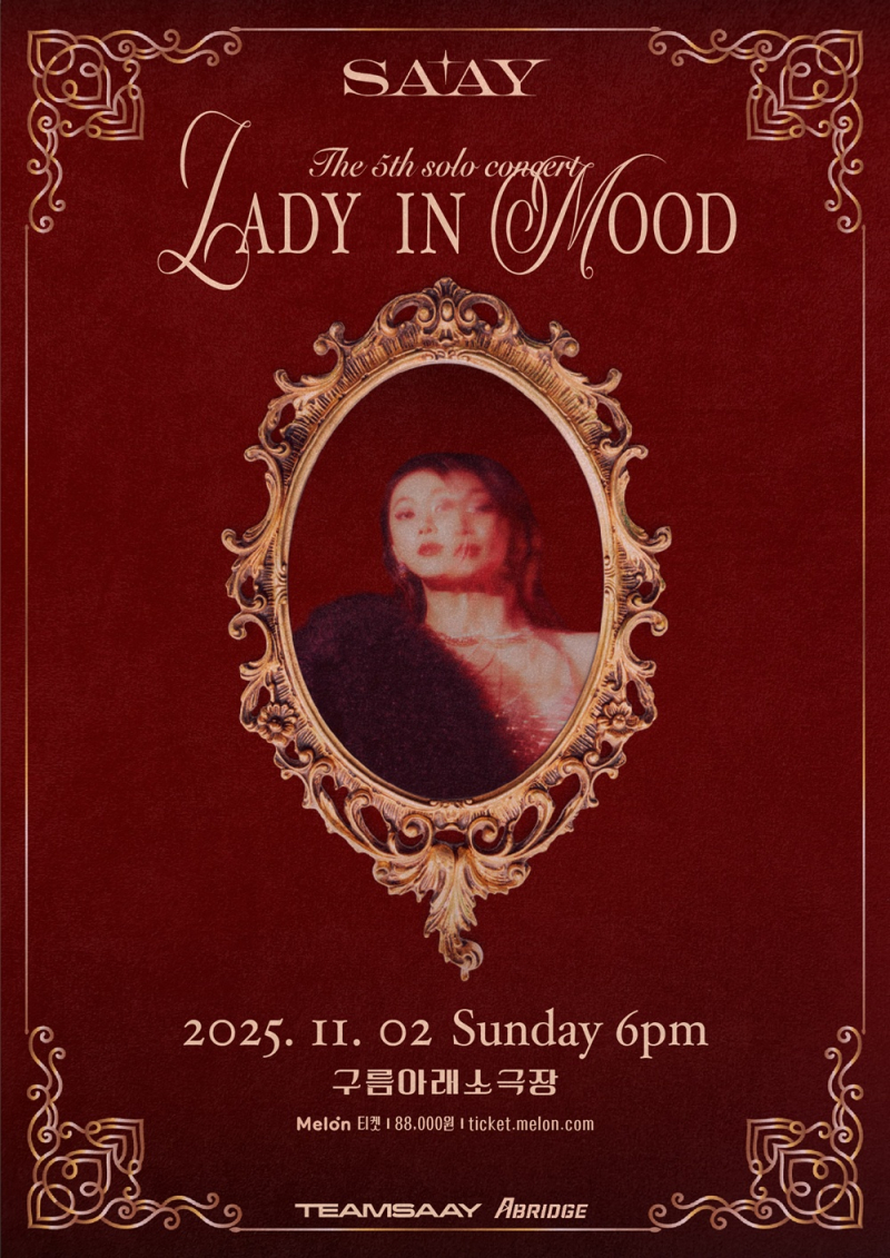 작사·작곡·프로듀싱을 아우르는 ‘올라운더 아티스트’로서 올 해를 그 어느때보다 풍성하게 채웠던 쎄이는 연말 콘서트를 통해 이번 콘서트를 통해 자신이 직접 만들어온 음악 세계를 한층 더 깊고 진솔하게 선보일 예정이다. ‘레이디 인 무드’는 올해 쎄이가 쌓아온 음악적 여정을 집약한 무대이자 그 안에 담긴 감정의 결을 온전히 느낄 수 있는 자리가 될 전망이다. 쎄이만의 감성과 퍼포먼스, 그리고 현장감 넘치는 사운드가 어우러져 팬들에게 잊지 못할 시간을 선사할 것으로 예상된다.