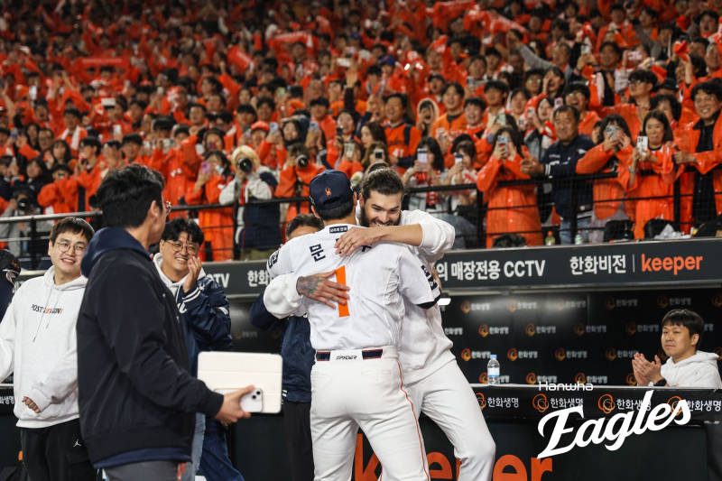 한국시리즈 진출을 이끈 폰세와 문동주. 김경문 감독의 단기전 승부수도 통했다. 결국 김경문(67) 감독의 초강수가 통했다. 한화 이글스가 19년 만에 한국시리즈(KS)로 향한다.