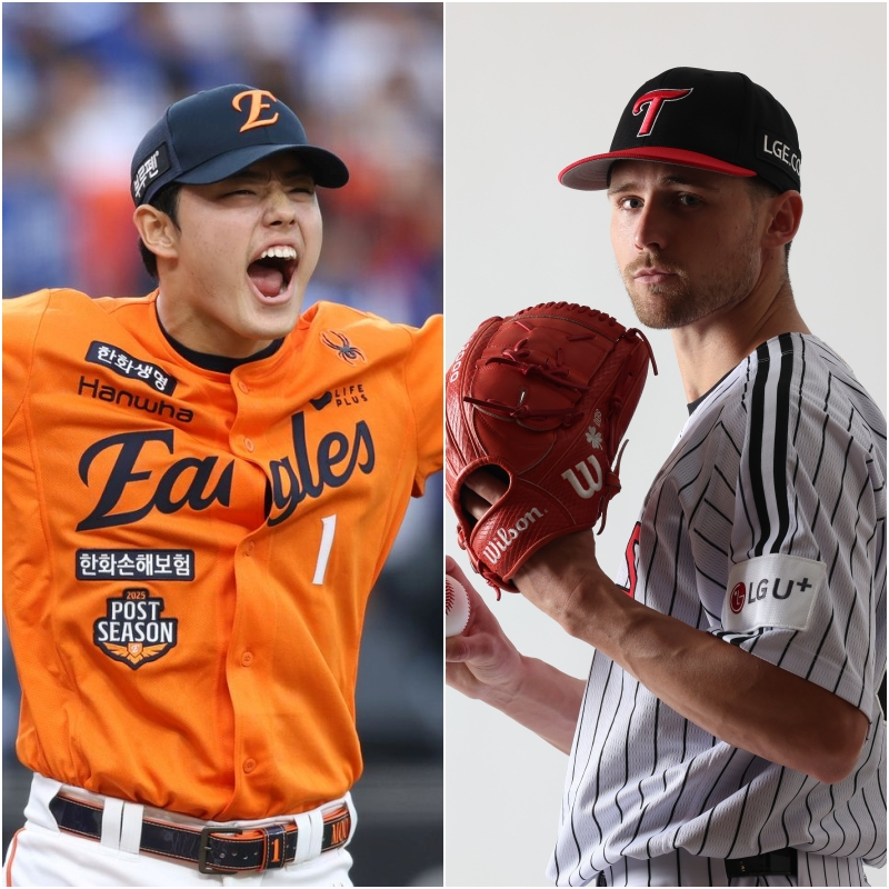 KS 1차전에서 선발 맞대결을 펼치는 한화 문동주(왼쪽)와 LG 톨허스트. 사진=구단 제공 LG 트윈스와 한화 이글스의 한국시리즈(KS·7전 4승제) 1차전 선발 투수는 앤더스 톨허스트와 문동주의 맞대결로 확정됐다. 한 달 만의 재대결이 성사됐다.