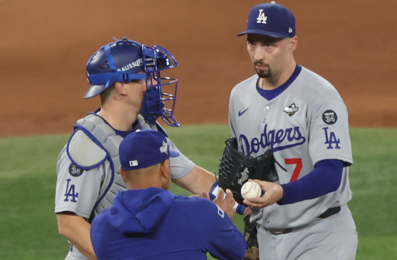 토론토는 4회 말 돌턴 바쇼가 다저스 선발 블레이크 스넬을 상대로 2점 홈런을 때려내며 동점을 만들었다. 월드시리즈 1차전 6회 교체되는 다저스 선발 투수 블레이크 스넬(오른쪽). UPI=연합뉴스 6회에는 무려 9점을 뽑아 승부에 쐐기를 박았다. 무사 만루에서 어니 클레멘트의 1타점 적시타로 3-2로 앞서갔다. 이어 대타 네이선 룩스의 밀어내기 볼넷, 안드레스 히메네스의 1타점 적시타로 5-2로 달아났다.