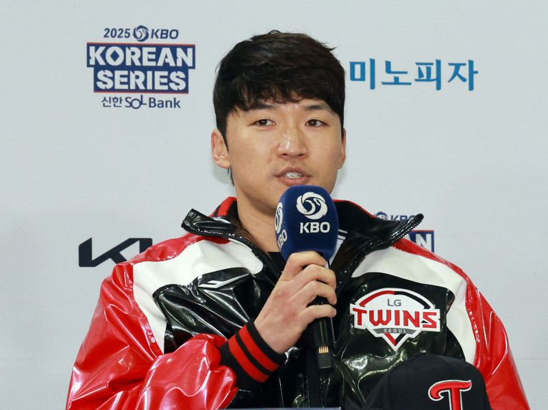각오 밝히는 박해민 (서울=연합뉴스) 한종찬 기자 = 25일 서울 잠실구장에서 열린 2025 신한 SOL뱅크 KBO 한국시리즈 미디어데이에서 LG 박해민이 발언하고 있다. 2025.10.25 saba@yna.co.kr/2025-10-25 14:20:03/ <저작권자 ⓒ 1980-2025 ㈜연합뉴스. 무단 전재 재배포 금지, AI 학습 및 활용 금지>
