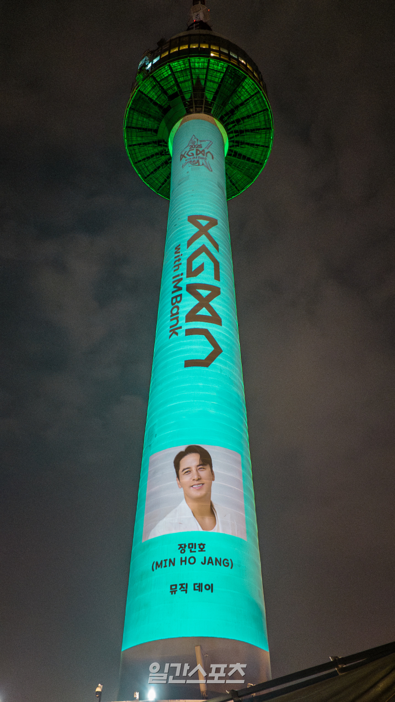 가수 장민호의 미디어아트 쇼가 남산서울타워를 민트빛으로 물들였다.