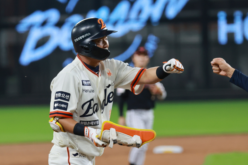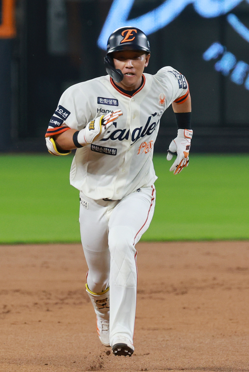 (대전=연합뉴스) 신현우 기자 = 29일 대전 한화생명볼파크에서 열린 프로야구 2025 신한 SOL 뱅크 KBO리그 LG 트윈스와 한화 이글스의 경기. 2회말 2사 1루 한화 황영묵이 1타점 적시 2루타를 친 뒤 3루까지 진루하고 있다. 2025.9.29 nowwego@yna.co.kr/2025-09-29 19:13:14/ <저작권자 ⓒ 1980-2025 ㈜연합뉴스. 무단 전재 재배포 금지, AI 학습 및 활용 금지> 김경문 한화 이글스 감독이 리드오프 교체를 통해 반격을 노린다.
