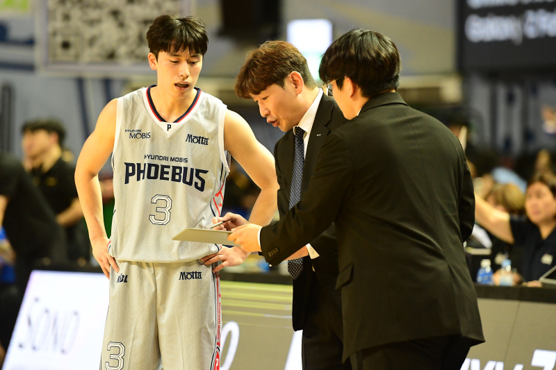 지난 23일 서울 삼성전에서 양동근 감독의 지시를 받는 박무빈. KBL 제공