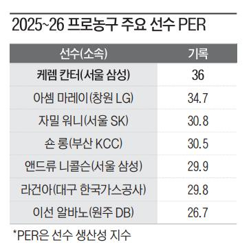 그의 효율성은 2차 지표에서 나타난다. 칸터의 올 시즌 선수 생산성 지수(PER·Player Efficiency Rating)는 36으로 주전급 선수 중 리그 1위다. PER은 선수의 긍정적인 기록에서 부정적인 기록을 차감해 분당 생산성을 측정한 수치. 칸터는 아셈 마레이(창원 LG·34.7) 자밀 워니(서울 SK·30.8) 숀 롱(부산 KCC·30.5) 등 리그 대표 외국인 선수들을 모두 제쳤다.