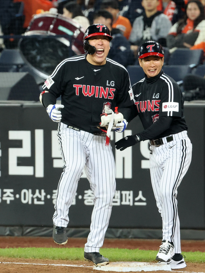 LG는 7회 초 1사 후 오지환이 볼넷을 얻어 출루했다. 와이스는 투구 수 100개를 넘긴 상황. 후속 박동원이 3루수 앞 땅볼에 그쳤는데, 한화 3루수 노시환은 2루 승부를 선택했고 오지환의 발이 더 빨랐다. 1사 1·2루. LG는 대타 문성주를 투입했다. 그러나 문성주가 유격수 앞 병살타에 그쳐 점수를 뽑지 못했다. (대전=연합뉴스) 김준범 기자 = 30일 대전한화생명볼파크에서 열린 2025 프로야구 KBO리그 포스트시즌 한국시리즈 4차전 LG 트윈스와 한화 이글스의 경기. 7회말 2사 2, 3루 때 한화 문현빈이 2타점 적시타를 쳐낸 뒤 환호하고 있다. <저작권자 ⓒ 1980-2025 ㈜연합뉴스. 무단 전재 재배포 금지, AI 학습 및 활용 금지> 한화는 7회 말 선두 타자 최재훈이 바뀐 투수 장현식에게 몸에 맞는 공을 얻어 출루했다. 후속 심우준의 희생 번트 때 선행 주자가 2루에서 아웃됐다. 한화는 손아섭이 3루수 앞 땅볼에 때렸으나, LG 3루수 문보경의 송구 실책으로 1사 2·3루 찬스를 잡았다. 루이스 리베라토가 삼진으로 물러났지만, 문현빈이 2타점 중전 적시타를 쳤다.
