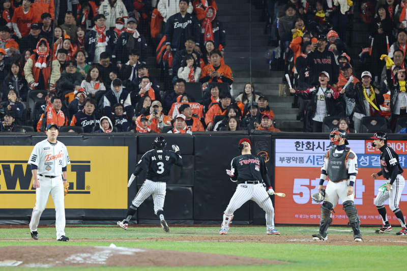 8회 초 2사까지 무득점에 그친 LG는 신민재가 2루타를 치고 나가면서 와이스를 마운드에서 끌어내렸다. 김현수가 바뀐 투수 김범수에게 1타점 적시타를 쳤다. 이어 문보경의 안타로 2사 1, 2루가 됐다. 한화는 마무리 김서현을 투입했고, 오스틴은 초구에 2루수 뜬공으로 물러났다.