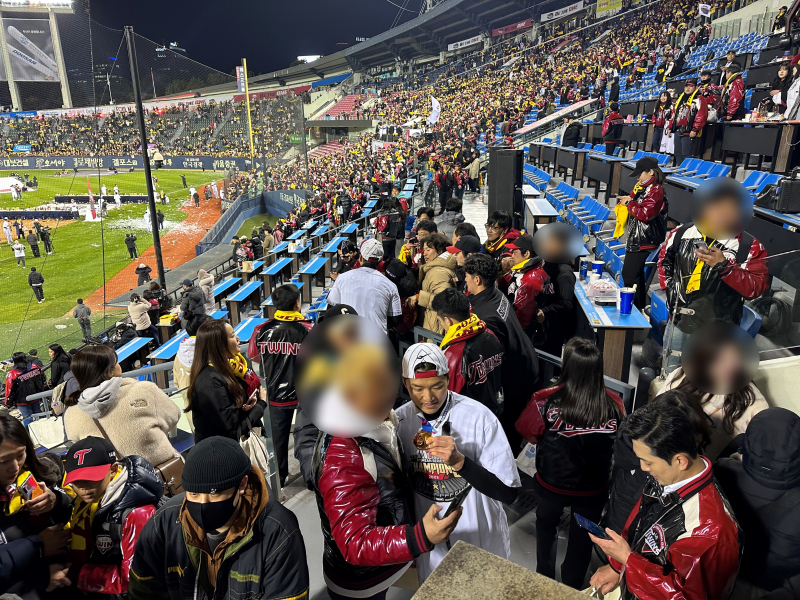 10월 31일 대전 한화생명볼파크. LG 트윈스 선수단이 그라운드에서 한창 2년 만의 우승을 만끽하던 순간, 박해민(35)과 임찬규(33)가 손을 맞잡더니 갑자기 3루측 관중석 앞으로 달려갔다. 잠시 후 3루측 원정 관중석에서 환호가 터졌다.