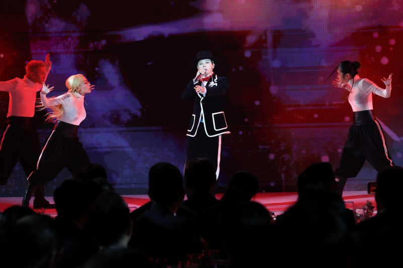 가수 지드래곤이 31일 경북 경주시 라한셀렉트호텔에서 열린 2025 아시아태평양경제협력체(APEC) 정상회의 환영 만찬에서 공연을 펼치고 있다. 2025.10.31 / 사진=연합뉴스 제공