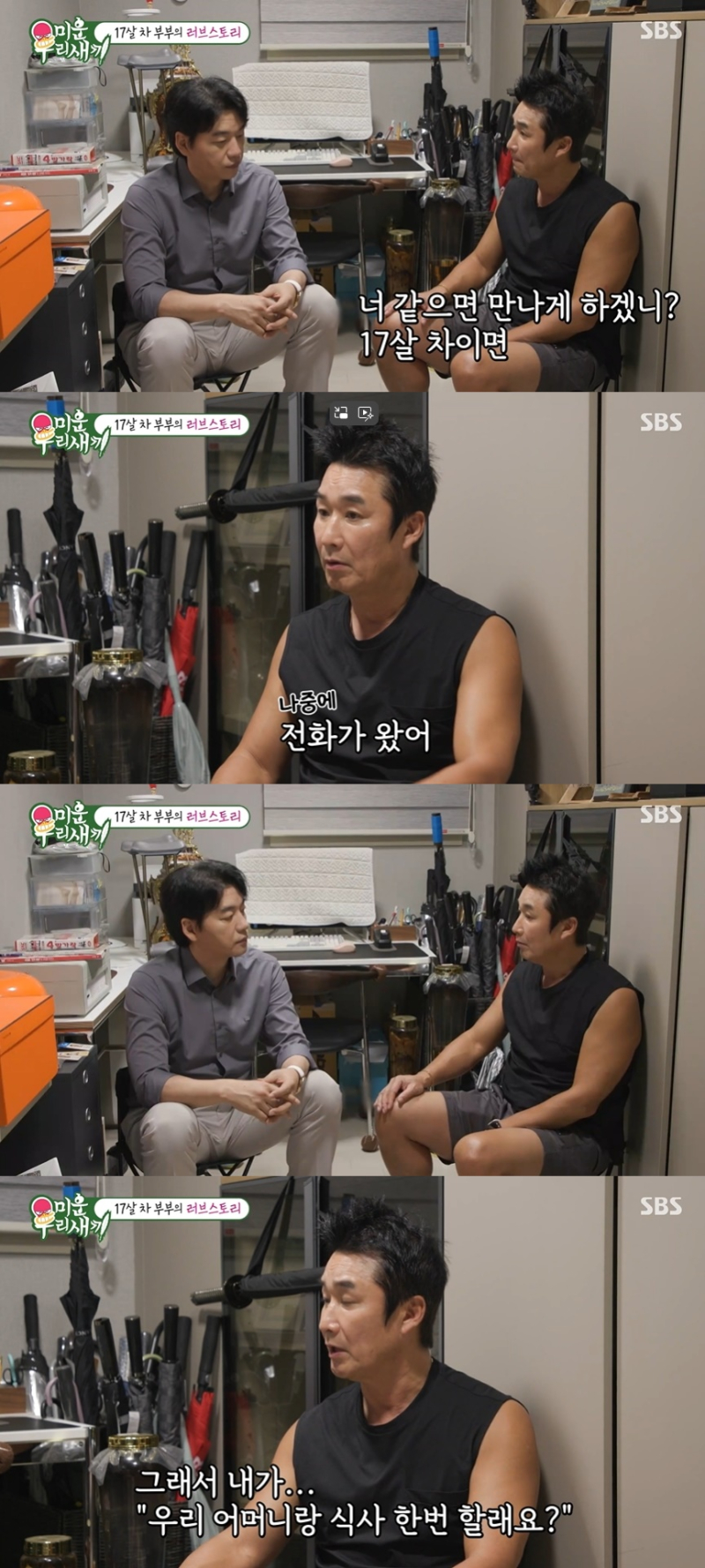 이후 그는 “크리스마스 이브에 우연히 심형탁을 만났는데, 그의 지인 중 한 명이 지금의 아내였다. 보자마자 나도 모르게 ‘전화번호 좀 물어봐도 돼요?’ 했다. (아내가) ‘선배님 무슨 상관이에요?’라면서 번호를 줬다”고 첫 만남을 떠올렸다. 당시 나이 차이를 몰랐다는 그는 “그때 내가 41살, 아내는 24살이었다”고 덧붙였다.