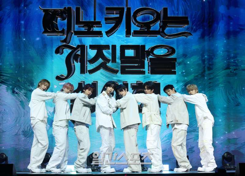 그룹 아홉(AHOF)이 4일 오후 서울 광진루 예스24라이브홀에서 열린 두 번째 미니 앨범 'The Passage'(더 패시지) 발매 기념 쇼케이스에 참석해 타이틀곡 무대를 선보이고 있다. 타이틀곡 '피노키오는 거짓말을 싫어해'는 변덕과 불안, 흔들림 속에서도 '너'에게만은 솔직하고 싶은 마음을 아홉 멤버들의 깊은 감성으로 풀어냈다. 서병수 기자 qudtn@edaily.co.kr /2025.11.04/
