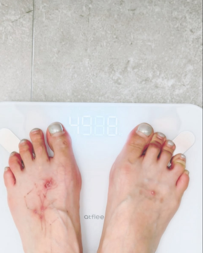 공개된 사진 속에는 체중계에 올라가 있는 현아의 발과 49kg이 찍힌 몸무게가 담겼다. 특히 최근 “어머니 권유로 1년째 타투를 지우고 있다”고 밝힌 현아는 발등의 문신이 거의 사라진 모습으로도 시선을 끌었다.