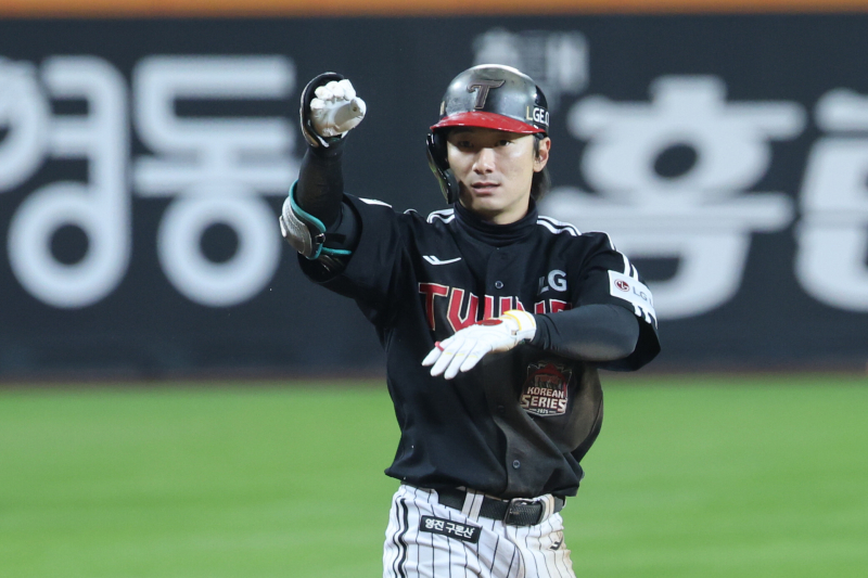 한화 이글스와의 한국시리즈(KS·7전 4승제) 5경기에 모두 출전한 그는 타율 0.409(22타수 9안타) 3타점 6득점을 올렸다. 2루타 3개, 3루타 1개를 기록해 장타율도 0.636이나 됐다. LG가 통합 우승을 차지했던 2년 전 KS에선 타율 0.167에 그쳤지만, 올해는 달랐다. 신민재 '동점이야' (대전=연합뉴스) 서대연 기자 = 29일 대전한화생명볼파크에서 열린 2025 프로야구 KBO리그 포스트시즌 한국시리즈 3차전 LG 트윈스와 한화 이글스의 경기. 3회초 2사 1루 LG 신민재가 1타점 적시타를 친 뒤 3루에서 세리머니를 하고 있다. <저작권자 ⓒ 1980-2025 ㈜연합뉴스. 무단 전재 재배포 금지, AI 학습 및 활용 금지> 신민재는 KS의 분수령이었던 4차전에서 대역전의 서막을 올렸다. 0-3으로 끌려가던 8회 초 2사 주자 없는 상황에서 2루타를 뽑아 117개의 공을 던진 한화 선발 라이언 와이스를 마운드에서 끌어내렸다. 신민재는 후속 김현수의 적시타 때 득점했고, LG는 9회 초 6점을 뽑아 7-4 역전승을 거뒀다. 신민재는 "우리가 밀리는 상태였지만, 질 것 같지 않았다"고 당시를 떠올렸다.