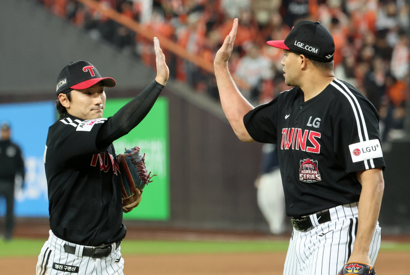 타격뿐 아니다. 2루수 신민재는 슬라이딩 캐치와 머리 위를 넘어가는 타구까지 여러 번 잡아냈다. 그는 "수비가 괜찮았고, 벤치의 사인대로 희생 번트도 두 차례 시도해 모두 성공했다"며 "수비와 작전에서 실수가 없었던 점이 마음에 든다"고 돌아봤다. (대전=연합뉴스) 김준범 기자 = 30일 대전한화생명볼파크에서 열린 2025 프로야구 KBO리그 포스트시즌 한국시리즈 4차전 LG 트윈스와 한화 이글스의 경기. 5회말 실점 위기를 넘긴 LG 치리노스가 호수비를 펼친 신민재를 격려하고 있다. 2025.10.30 psykims@yna.co.kr/2025-10-30 20:04:26/ <저작권자 ⓒ 1980-2025 ㈜연합뉴스. 무단 전재 재배포 금지, AI 학습 및 활용 금지> 신민재는 체격(1m71㎝)이 작은 탓에 프로 구단의 지명을 받지 못했다. 2015년 두산 베어스 육성 선수로 입단한 그는 2017년 11월 2차 드래프트를 통해 LG로 이적했다. 2019년 1군 데뷔 후 대주자로 활약하던 신민재는 염경엽 감독이 부임한 2023년 주전으로 올라섰다.