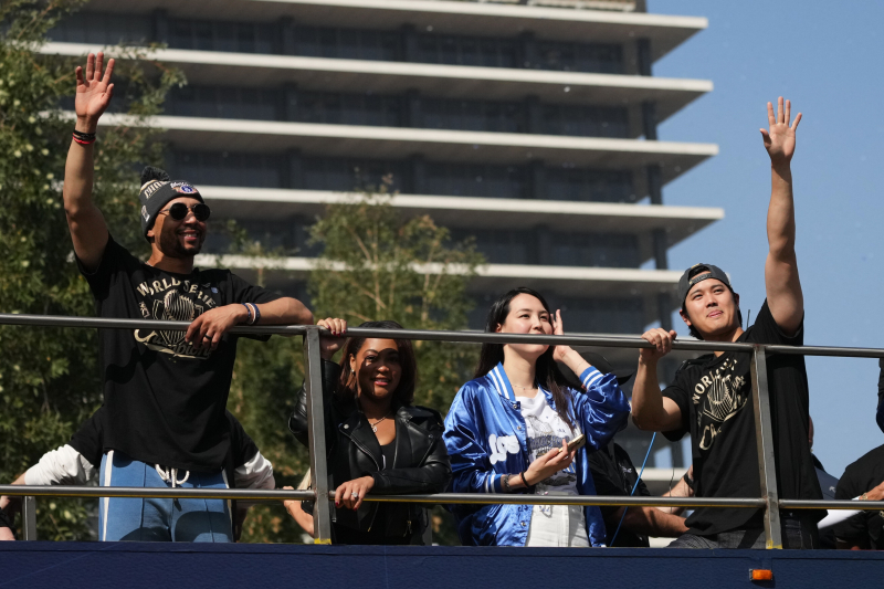 다저스는 지난 4일(한국시간) 미국 캘리포니아주 LA 도심에서 '우승 카퍼레이드'를 했다. 오타니는 아내 다나카 마미코 자신의 반려견과 함께 카퍼레이드를 즐겼다. 우승 카퍼레이드에 참석한 오타니(오른쪽)와 아내 다나카. AP=연합뉴스 오타니는 다저 스타디움에서 열린 행사에서 마이크를 들고 "나는 이 팀이 정말 자랑스럽다. 여러분은 세계 최고의 팬"이라고 인사하며 "내년에도 새로운 우승 반지를 낄 것"이라고 약속했다. 오타니는 10년 총 7억 달러(1조 108억원)의 계약 후 다저스를 2년 연속 우승 팀으로 만들었다.