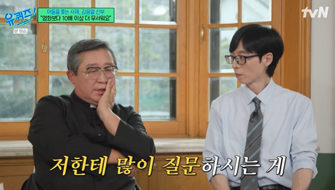 김웅열 신부는 5일 방송된 tvN 예능프로그램 ‘유 퀴즈 온 더 블럭’(이하 ‘유퀴즈’)에 출연해 “저한테 많이 질문하는 게 한국의 대표적인 엑소시즘 영화들이 있는데, 그곳에 나오는 만큼 진짜 무섭냐는 것”이라며 “실제는 영화보다 10배 이상 무섭고 공포스럽다”고 했다.