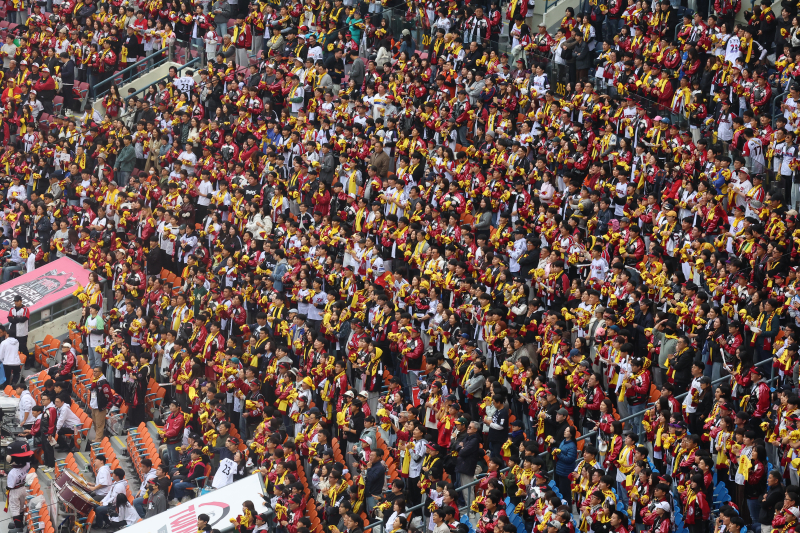 합산 누적 시청자수도 와일드카드 결정전 약 209만명, 준플레이오프 약 475만명, 플레이오프 약 932만명, 한국시리즈 약 1007 만명을 기록했다. 전체 누적 시청자수는 2687만 3049명으로 전체 국민의 절반 이상이 시청한 것으로 나타났다. 평균 시청자 수는 전국 기준으로 167만 9566명으로 2024년 대비(130만 8785명) 28% 정도 증가했다. (서울=연합뉴스) 서대연 기자 = 26일 서울 잠실야구장에서 열린 2025 프로야구 KBO리그 포스트시즌 한국시리즈 1차전 한화 이글스와 LG 트윈스의 경기에서 관중들이 응원전을 펼치고 있다. <저작권자 ⓒ 1980-2025 ㈜연합뉴스. 무단 전재 재배포 금지, AI 학습 및 활용 금지> 2025 KBO리그는 정규시즌 역대 최초 1200만 관중을 돌파하며 뜨거운 인기를 자랑했다. LG의 통합 우승으로 막을 내린 포스트시즌까지 그 열기가 이어졌다.