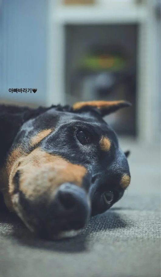 배정남은 지난 7일 자신의 SNS에 “아빠바라기♥”라는 문구와 함께 반려견 벨의 사진을 게재했다.