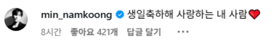 남궁민, ‘11살 연하♥’ 진아름 생일에 달달한 멘트… “사랑하는 내 사람”