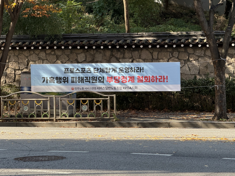 KPGA 노조는 A를 직장내 괴롭힘으로 노동청과 경찰에 고발했고, 직장내 괴롭힘 사실이 확인됐다. 그러나 이후 KPGA 직원 3명이 한꺼번에 해고당하고 그 외의 직원들도 대량 징계를 당하는 일이 발생했다. KPGA는 이 해고자 3인을 비롯한 징계자들이 모두 A에게 괴롭힘을 당한 피해자였다면서 KPGA가 보복성 징계로 이들을 부당 해고 한 것이라고 반발했다. 반면 KPGA는 직무 과실로 인한 적법한 해고였다고 맞섰다. 사진=KPGA 노조 제공 사진=KPGA 노조 제공 KPGA 노조는 법적인 대응과 시위를 계속 이어가고 있다. 노조는 지난 9월 서울동부지방검찰청이 A를 강요 및 모욕 등의 혐의로 불구속 구공판 기소했다고 밝혔다.
