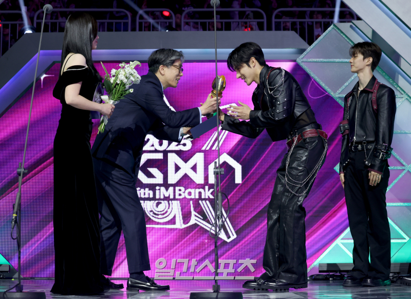 2025 코리아 그랜드 뮤직 어워즈 with iM뱅크’(2025 KGMA) 첫날 아티스트데이가 14일 오후 인천 영종도 인스파이어 아레나에서 펼쳐졌다. 황원철 iM뱅크 상무가 더보이즈에게 iM뱅크 스마트서포터상을 시상하고 있다. KGMA는 한 해 동안 국내외 팬들에게 많은 사랑을 받은 K팝 아티스트와 작품들을 조명해 차별화된 콘텐츠를 선보이는 K팝 축제다. 올해는 KGMA 조직위원회와 크리에이터링, 디오디가 공동 주관하며, 인천광역시와 인천관광공사가 후원한다. 타이틀 스폰서로는 iM뱅크가 함께한다. 2025 KGMA는 KT ENA가 주관 방송사로 참여하며, 틱톡라이브를 통해 일본, 중국을 제외한 국내 및 글로벌에 생중계된다. 일본에서는 훌루 재팬을 통해 실시간으로 볼 수 있다. 영종도(인천)=KGMA특별취재단/2025.11.14./