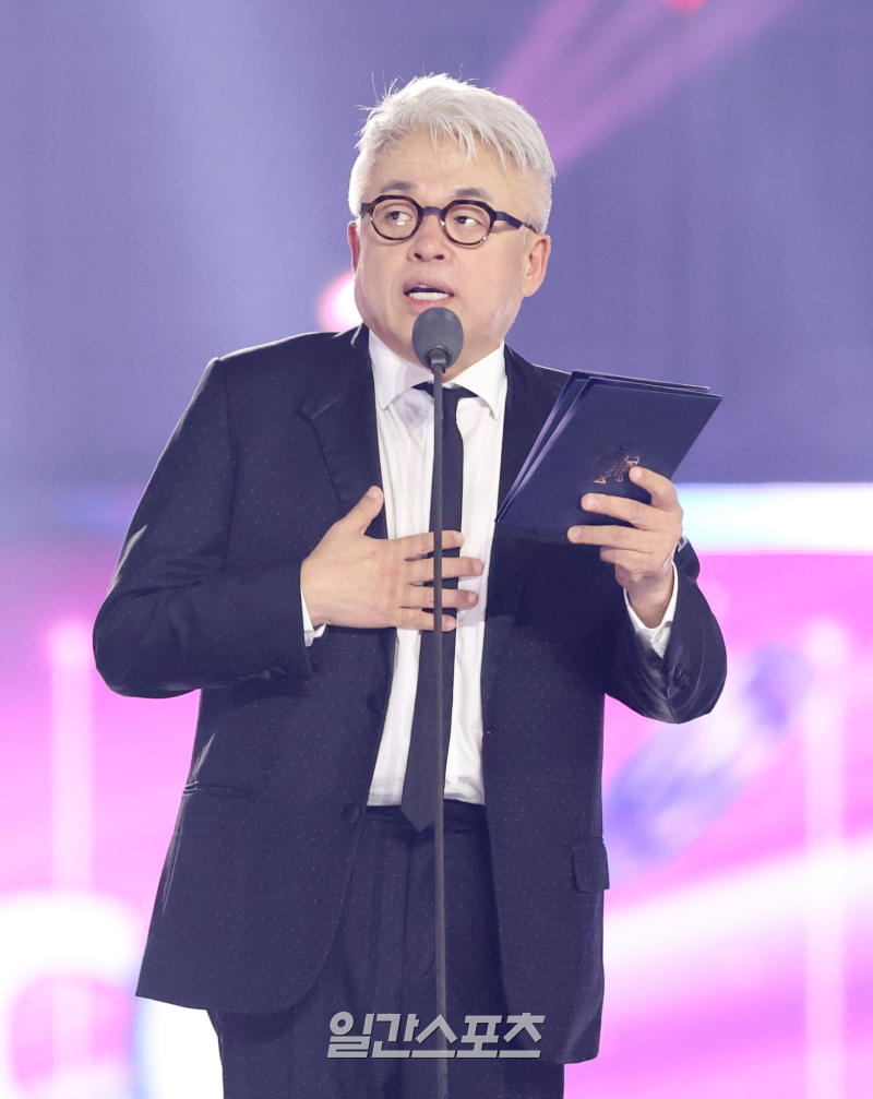KGMA 심사위원장 김형석이 시상자로 나서고 있다.
