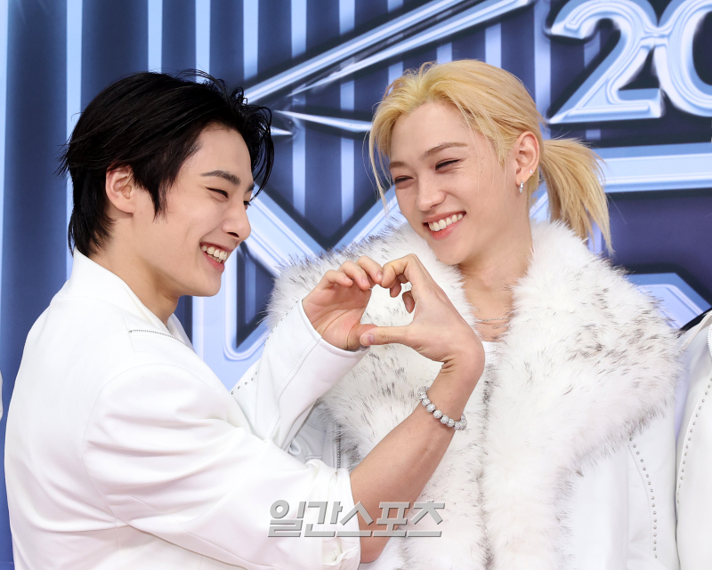 본 행사 전 진행된 레드카펫 행사에서 아이엔, 필릭스 등 스트레이키즈 멤버들이 포즈를 취하고 있다.