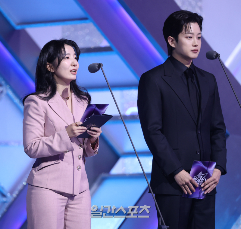 김미희 빅크 대표와 배우 김민석이 시상자로 나서고 있다.