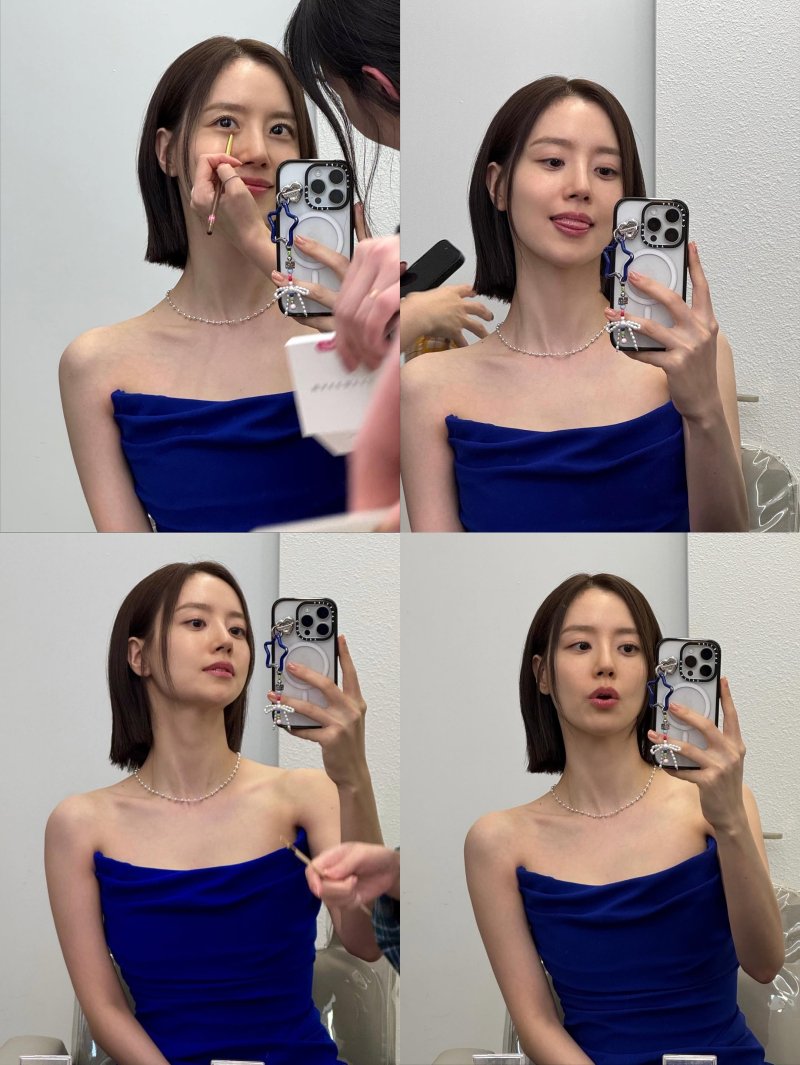 문채원은 최근 자신의 SNS에 여러 장의 사진을 올렸다. 공개된 사진 속 그는 짧은 보브 컷 헤어스타일에 청량한 로열 블루 드레스를 착용한 채, 메이크업을 받으며 여유로운 미소를 짓고 있다.