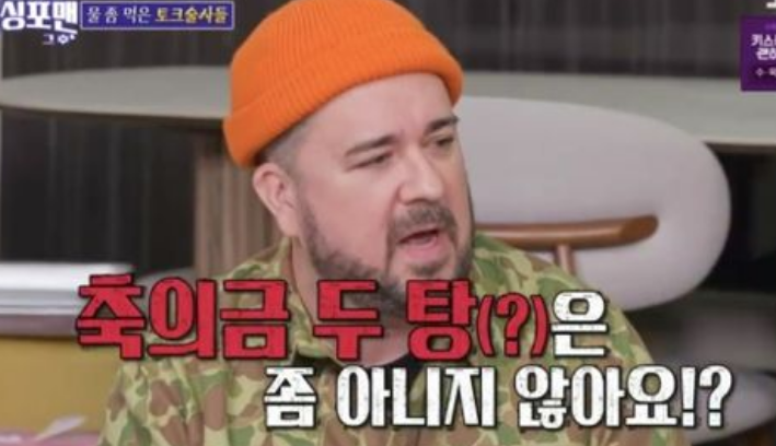 그러나 샘 해밍턴은 “축의금 두 탕은 아니지 않냐”면서 “축의금 대신이다”라고 쌀 한 포대를 선물로 내밀었다. 김준호는 “고맙다. 두 탕을 챙겨줘서”라고 말해 웃음을 안겼다.
