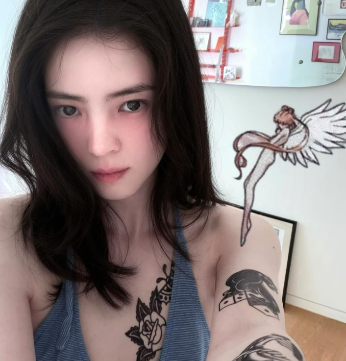 공개된 사진 속에서 한소희는 롱부츠와 레오파드 패턴의 아우터를 착용한 스타일부터, 벙거지 모자와 박시한 티셔츠를 매치한 캐주얼한 모습, 그리고 슬리브리스 상의와 패딩 점퍼를 활용한 모습 등 여러 스타일링을 선보였다. 사진제공=한소희 SNS 특히, 여러 컷에서 신체 일부에 새겨진 타투가 노출돼 눈길을 끈다. 팔뚝과 쇄골, 그리고 복부 일부에 걸쳐 검은색 잉크로 이루어진 타투 문양들이 의상 밖으로 드러났다.