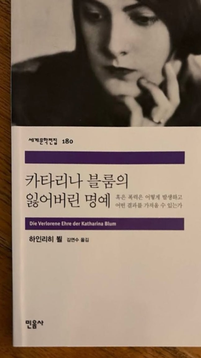 민 전 대표는 24일 개인 소셜미디어(SNS)에 하인리히 뵐 작가의 소설 ‘카타리나 블룸의 잃어버린 명예’ 책 표지를 찍어 올렸다. 이 책의 부제는 ‘혹은 폭력은 어떻게 발생하고 어떤 결과를 가져올 수 있는가’이다.